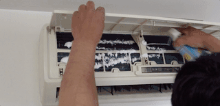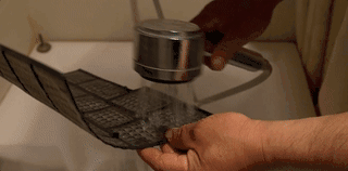▲ 满是灰尘的滤网 ▲ 充满污垢的散热片 上面这些,是拆开了的、没有清洗过的空调。别不信,我第一次做空调清洁的时候,也是有被吓到的~ 空调中的这些灰尘细菌随着空调的运转,一则会污染室内空气,二则会影响空调的制冷和制热性能。所以各位,空调一定要记得经常清洗啊! 空调运行时,室内是一个密闭空间,空气不流通,人体产生的代谢物、废气,生活中产生的的尘埃和颗粒物,都会随着室内空气循环进入空调中,让空调变脏。 空调内最脏的部分主要是两大块,散热片和滤网。 散热片一般在空调过滤网后面,空调冷热交换少不了它。空气中的灰尘、污垢不断累积在散热片上,再加上空调冷凝水造成的潮湿环境和空调运转时适宜的温度,让它成为了病菌滋生的温床。 ▲ 未清洗的散热片 滤网是空调上的初级过滤系统,主要是过滤空气中的灰尘。。 ▲ 未清洗的滤网 除了这两个藏污纳垢的大户,风轮、扇叶,以及机身的缝隙里,日积月累都会藏着灰尘和细菌。 所以,我们洗空调的重点部位就是:散热片、滤网、风轮和扇叶。 市场上是有空调清洗服务的,费用60-200不等,但其实吧,只要你稍微有点动手能力,洗空调这件事完全可以自己来。 在清洗之前记得先把空调断电,然后只需要: 01 卸下空调前盖 02 取下空调滤网 03 用流水冲洗滤网并擦干 最后擦拭机身,装上滤网就好啦! 简单不?一个人也能轻松做完,十分钟的时间都用不了。 需要注意的是: 不同空调盖的拆卸方式不同,有的是卡扣式固定,借助巧劲就能轻松取下;有的是螺丝固定,需要用螺丝刀拧,拧下螺丝之后记得收好它们,一会儿还得装回去。 滤网冲洗后一定要擦干净,潮湿的滤网容易滋生细菌。如果不着急的话可以放在阳光下晒一会儿。 和基础清洗相比,深度清洗就需要借助一些工具了,主要是高温蒸汽清洁机和空调清洁剂,可以自行搜索网购哈。 01 卸下空调前盖 02 取下空调滤网 03 高温蒸汽清洁机清洗 仔细地清理散热片、风轮、叶片这些用手难以清理的位置,然后用毛巾擦干清洗过的地方。 04 喷涂清洁剂 把空调清洁剂均匀地喷涂在散热片上,静置 15 分钟左右,然后打开窗户通风,并让空调在制冷模式下运行 15~30 分钟,之后就可以正常使用啦! 需要注意的是: 不同型号的空调,散热片和滤网的位置会有差异,清洗前最好先看下说明书。 高温蒸汽和空调清洁剂作用位置仅限于散热片、风轮、叶片这些位置,不要往电机上喷涂。 最后,不是只要洗一次就够了哈!在每年夏季和冬季第一次用空调前,对它进行一次深度彻底的清洗;在日常使用过程中,也要根据空调使用的频率和时长,保持半个月到一个月一次的基础清洁。祝大家都能吹到干干净净的空调~
