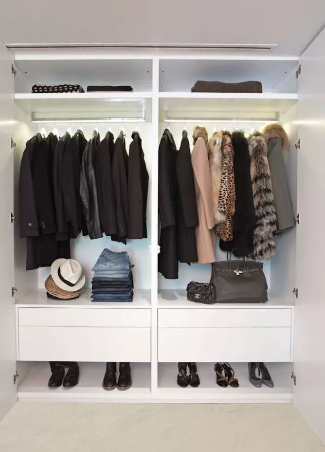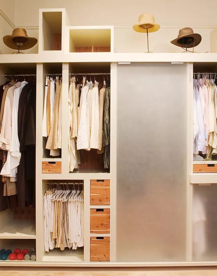 可以将衣柜按衣物更换频度划分为三个区域:过季、当季、常换。